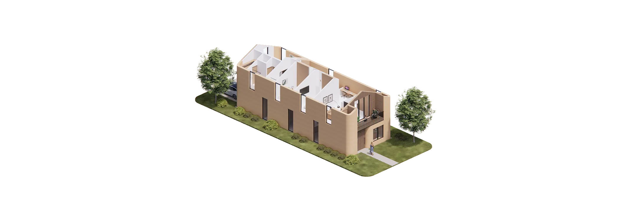 ICON’s Lavacrete can be printed at high speeds while retaining form, enabling homes to be built faster while keeping construction projects on schedule and on budget. Lavacrete, a high-strength concrete, boasts a compressive strength of 2,000 - 3,500 psi. In structural tests, ICON's wall system exceeded building code design requirements by more than 350%.